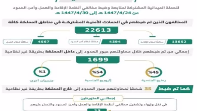 الرياض: واس أسفرت الحملات الميدانية المشتركة لمتابعة وضبط مخالفي أنظمة الإقامة والعمل وأمن الحدود، التي تمت في مناطق المملكة كافة،…