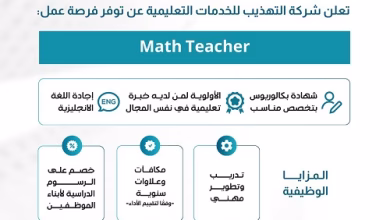 فرص وظيفية تُعلن شركة التهذيب للخدمات التعليمية عن توفر فرص عمل للوظائف التالية Math Teacher للتقديم يمكنكم زيارة الرابط التالي…