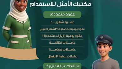مجالات التميز شركتكم الأمثل للاستقدام نقدّم حلولًا مرنة تناسب احتياجات كل أسرة عقود شهرية ويومية زيارات متعددة رعاية أطفال ضيافة…