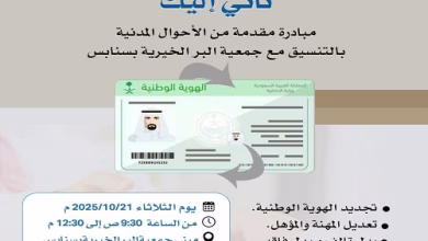 الثلاثاء.. “نأتي إليك” في جمعية سنابسسنابس: صُبرة تستعد جمعية البر الخيرية بسنابس لاستضافة مبادرة “نأتي إليك”، المنفذة من قبل وكالة وزارة الداخلية بمكتب إدارة الأحوال… أكمل القراءة »